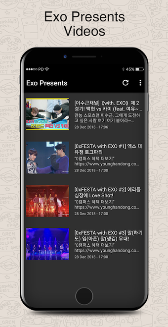 Dit is een applicatie voor alle fans van de populaire Zuid-Koreaanse boyband, Exo. Hier kun je meezingen met alle nummers van de band, de leden beter leren kennen en ook de nummers beter leren kennen. Dit alles zal worden gedaan via de applicatie, die je zal helpen om de songteksten beter te begrijpen.